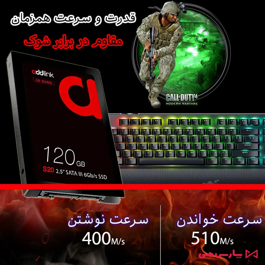 افزایش سرعت لپتاپ یا کامپیوترتان با Addlink S20 120GB SSD. حافظه 2.5 اینچی با رابط SATA III، سرعت بالا، عمر طولانی و قیمت مناسب. سفارش آسان و ارسال سریع!