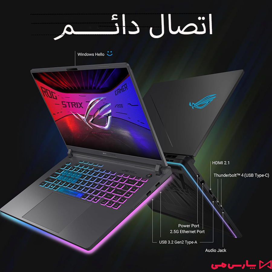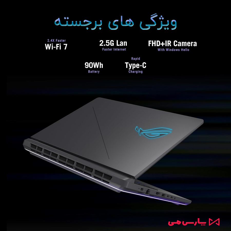 میکند. اتصال سریع Wi-Fi 7 و پورتهای پیشرفته این لپتاپ را به انتخابی حرفهای برای گیمرها و کاربران حرفهای تبدیل کرده است.