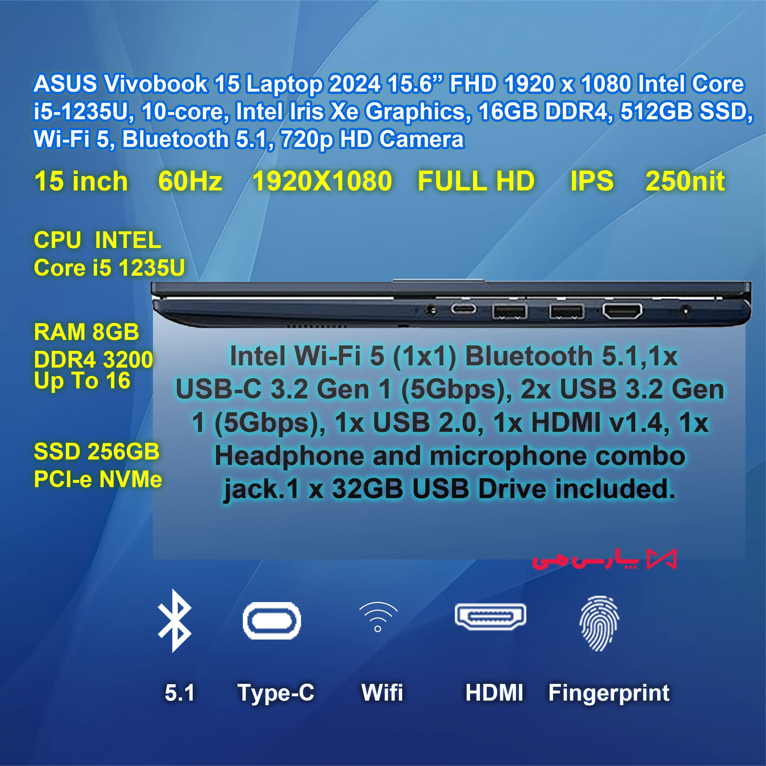 مشخصات فنی Asus F1504ZA i5 (1235U) 16G DDR4 512SSD IRIS XE FHD