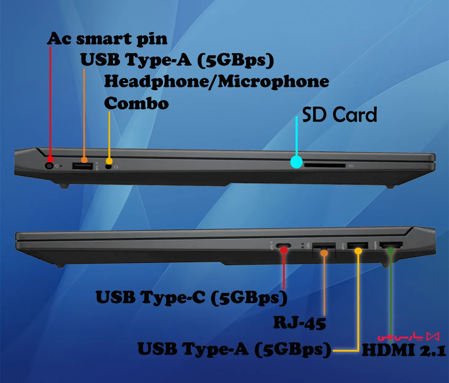 مشخصات فنی HP VICTUS 15-FA2013DX GAMING i5 13420H 24GB DDR4 1T RTX 3050 6GB/15.6" FHD/IPS/WIN11/SL