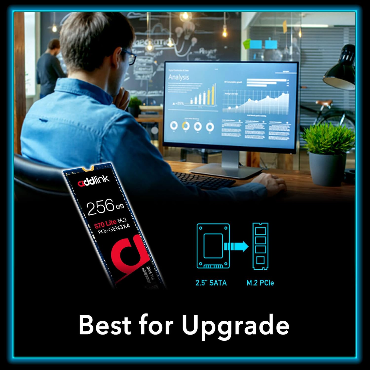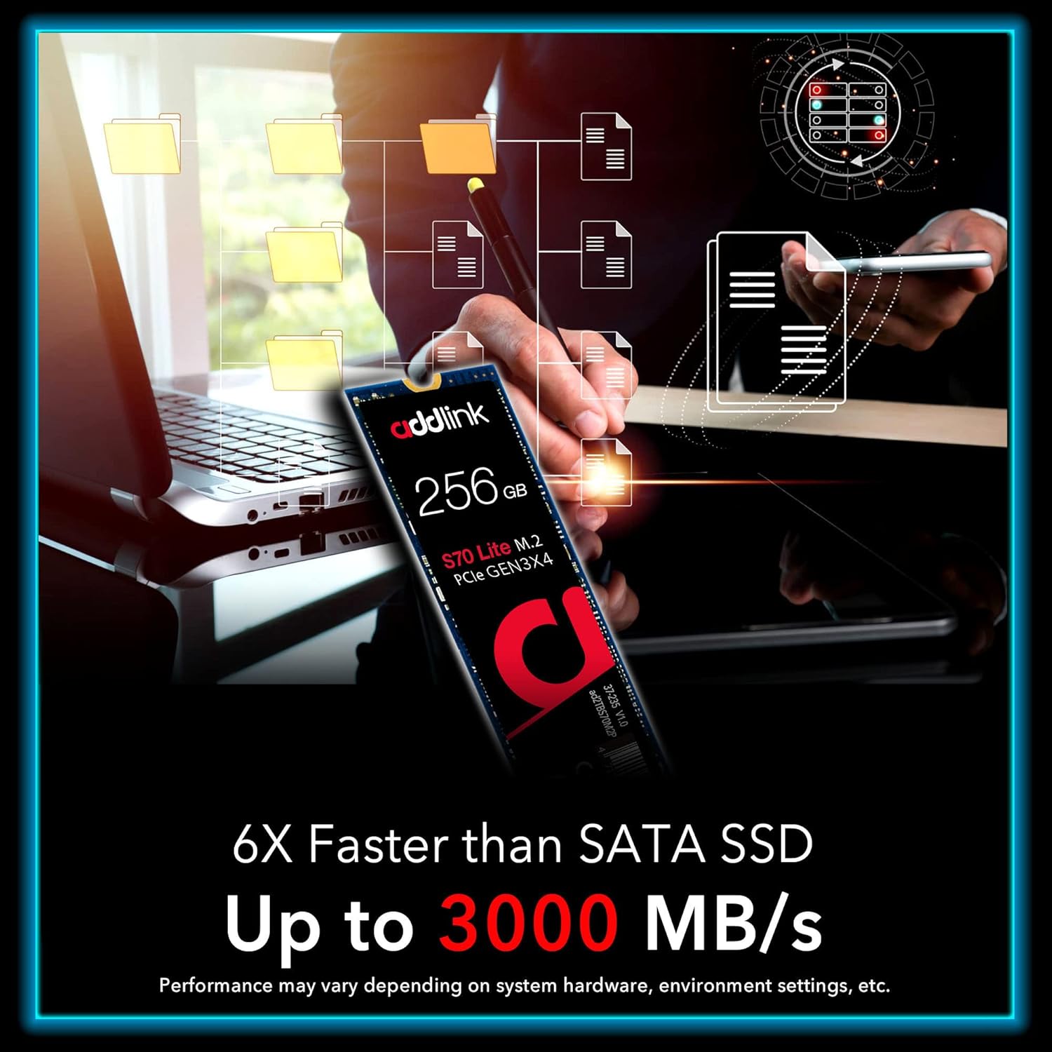 SSD Addlink S۷۰ Lite ۲۵۶GB یک حافظه پرسرعت با رابط NVMe PCIe Gen۳x۴ و فرم فاکتور M.۲ ۲۲۸۰ است که با سرعت خواندن تا ۳۰۰۰MB/s و نوشتن تا ۱۰۰۰MB/s، گزینهای مناسب برای ارتقای سیستمهای خانگی، گیمینگ و اداری با بودجه متوسط محسوب میشود.همچنین برای ارتقا PS۴ گزینه مناسبی میباشد.