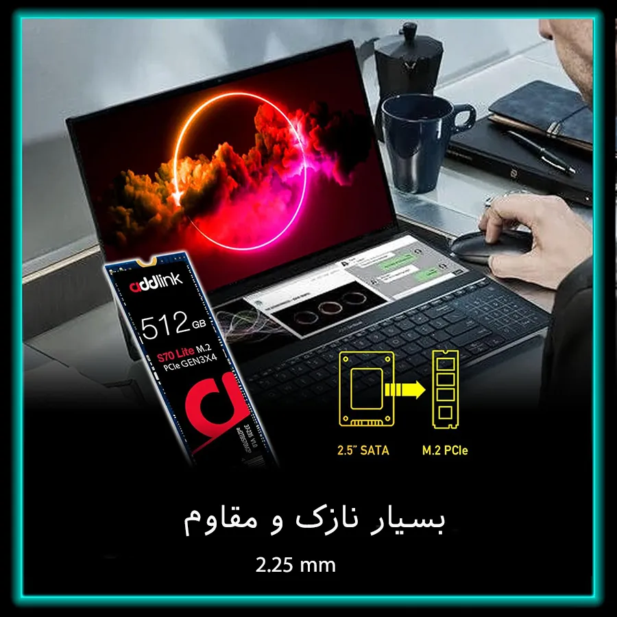SSD Addlink S۷۰ Lite ۵۱۲GB یک حافظه پرسرعت با رابط NVMe PCIe Gen۳x۴ و فرم فاکتور M.۲ ۲۲۸۰ است که با سرعت خواندن تا ۳۰۰۰MB/s و نوشتن تا ۱۰۰۰MB/s، گزینهای مناسب برای ارتقای سیستمهای خانگی، گیمینگ و اداری با بودجه متوسط محسوب میشود.همچنین برای ارتقا PS۴ گزینه مناسبی میباشد.